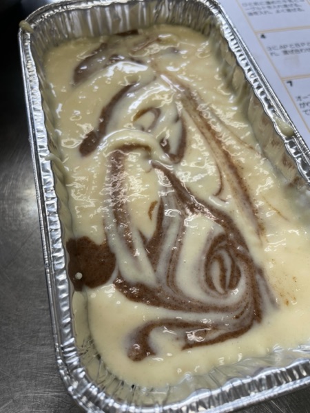 今回のメニューは、「米粉のシナモンマーブルケーキ」。